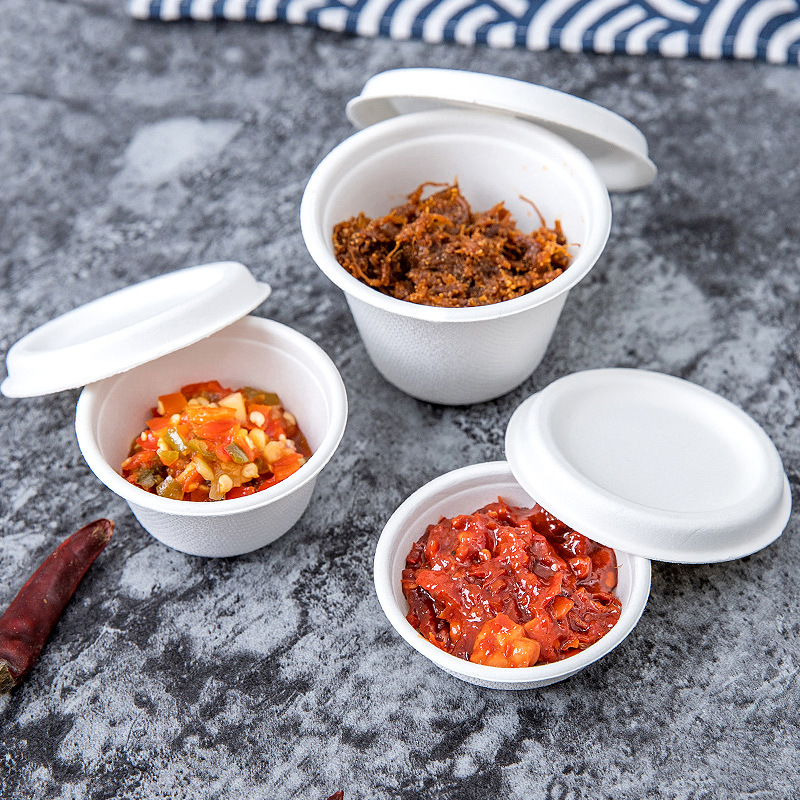 電子レンジ対応使い捨てソース容器、環境に優しい紙パルプ製小物入れ、生分解性テイクアウト用バーベキュー用チリソース・酢入れ