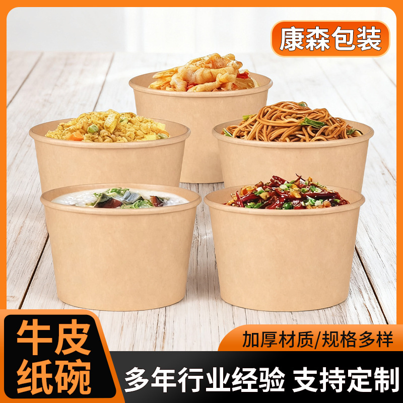印刷可能な牛革紙ボウル、包装用紙ボウル、丸型スープボウル、スープ容器、ファーストフードボックス、テイクアウト用使い捨て食品グレード
