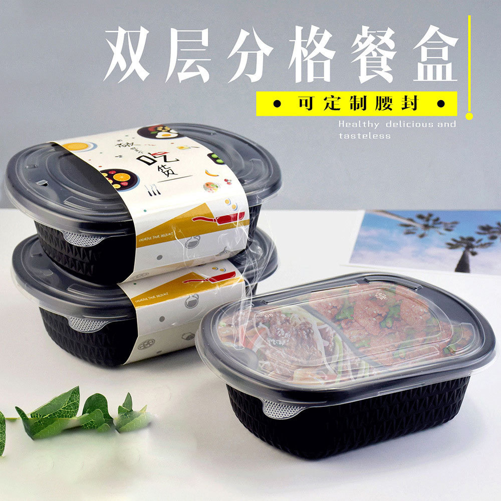 メーカー直販使い捨て二重ランチボックス出前梱包ボックス高級黒色プラスチックランチボックス使い捨てランチボックス