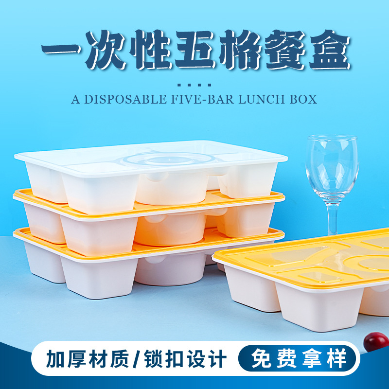 使い捨ての5つのランチボックスのロックは、スープ付きのお椀を持っています。
