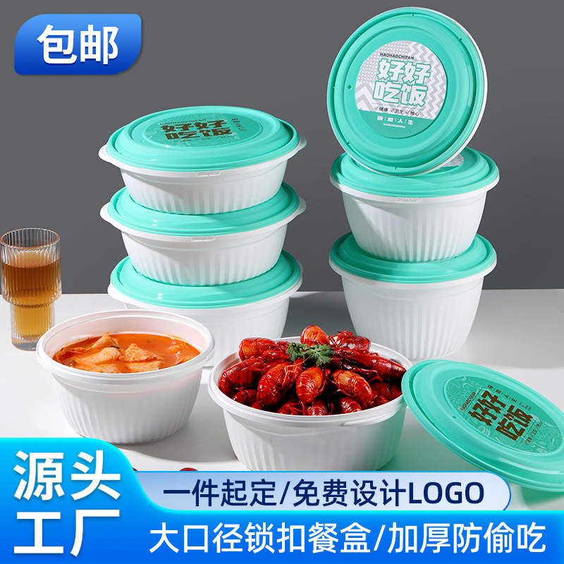 山の箱の美の使い捨ての弁当箱の盗難防止のロックは円形のテイクアウトの包装の箱の酸っぱい魚のロブスターの丸い碗のファーストフードの箱を掛けます。