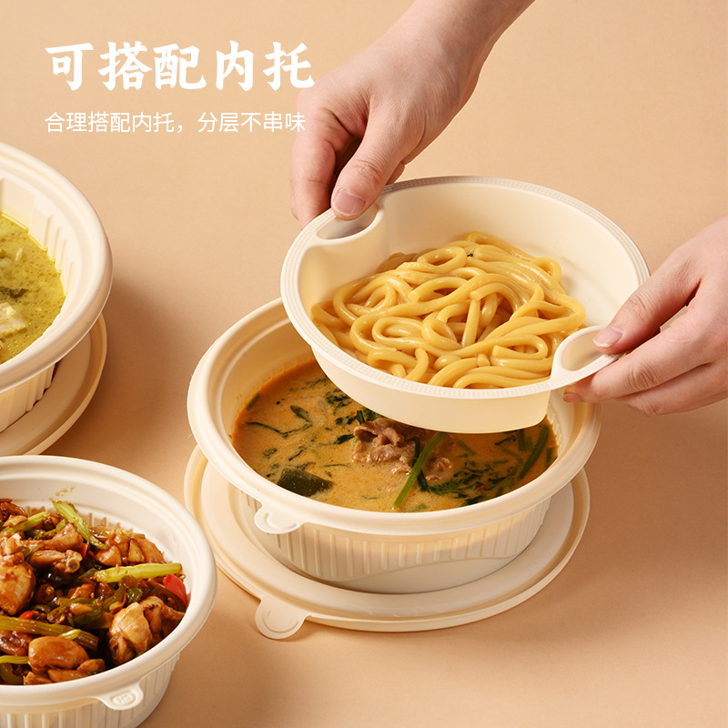 使い捨て分解性コーンスターチテイクアウト包装箱ラウンドランチボックス食品グレードの環境に優しいスープヌードル分離ラウンドボウル