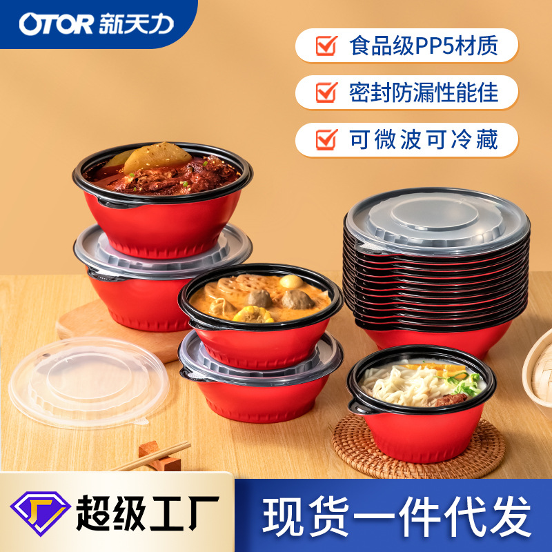 OTOR 新天力使い捨て PP ボウル赤い密封された外箱販売蓋付き包装箱食品グレード使い捨てラウンド