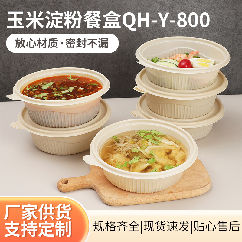 生分解性使い捨て弁当箱コーンスターチ弁当箱ラウンドテイクアウト弁当箱食品グレードラウンドボウル蓋付き