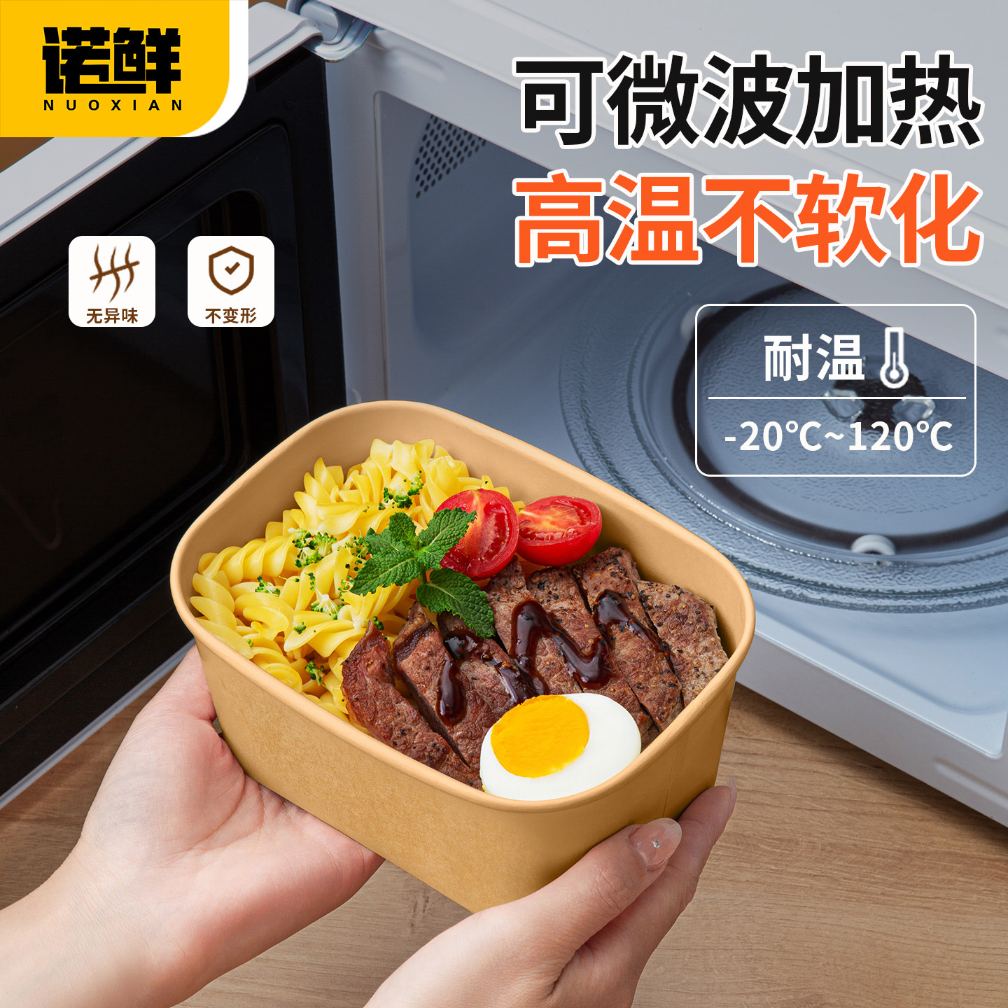 使い捨て食器包装箱、牛革紙ボウル、電子レンジ対応、冷蔵可能、厚手のテイクアウトボックス、食品グレードの弁当箱