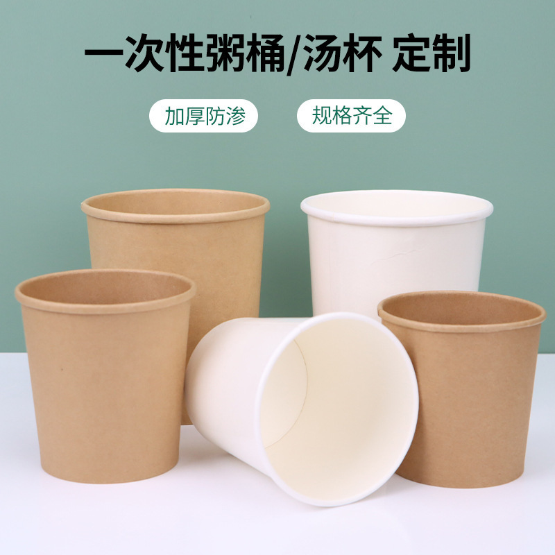 スープバレル粥バレル使い捨てクラフト紙スープカップ厚い防水防油印刷ロゴテイクアウト梱包
