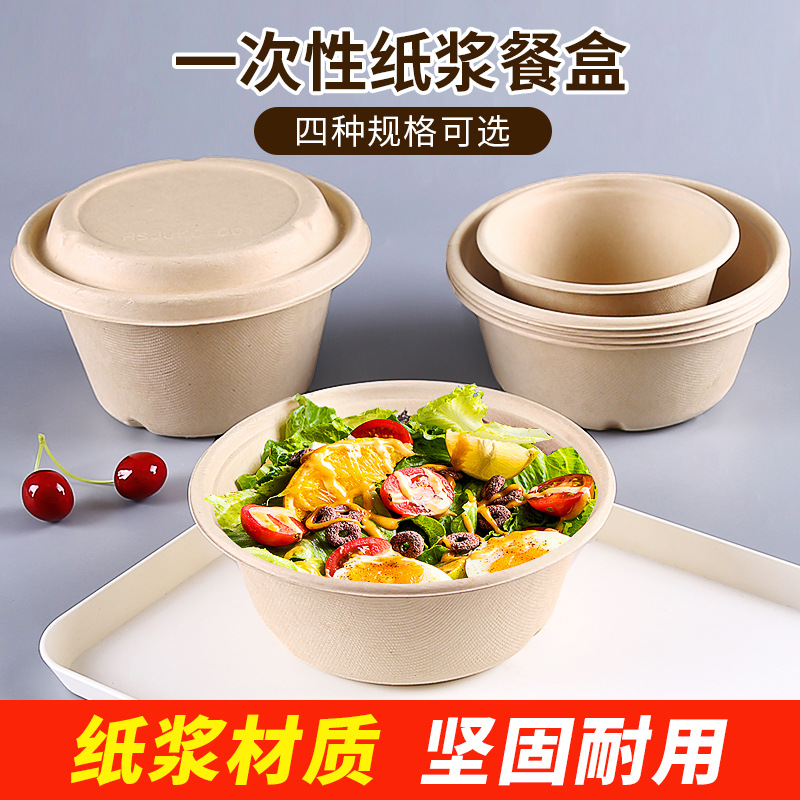 使い捨て包装箱卸売りパルプボウル円形ランチボックス軽食サラダ紙ボウル果物すくい氷粉弁当箱