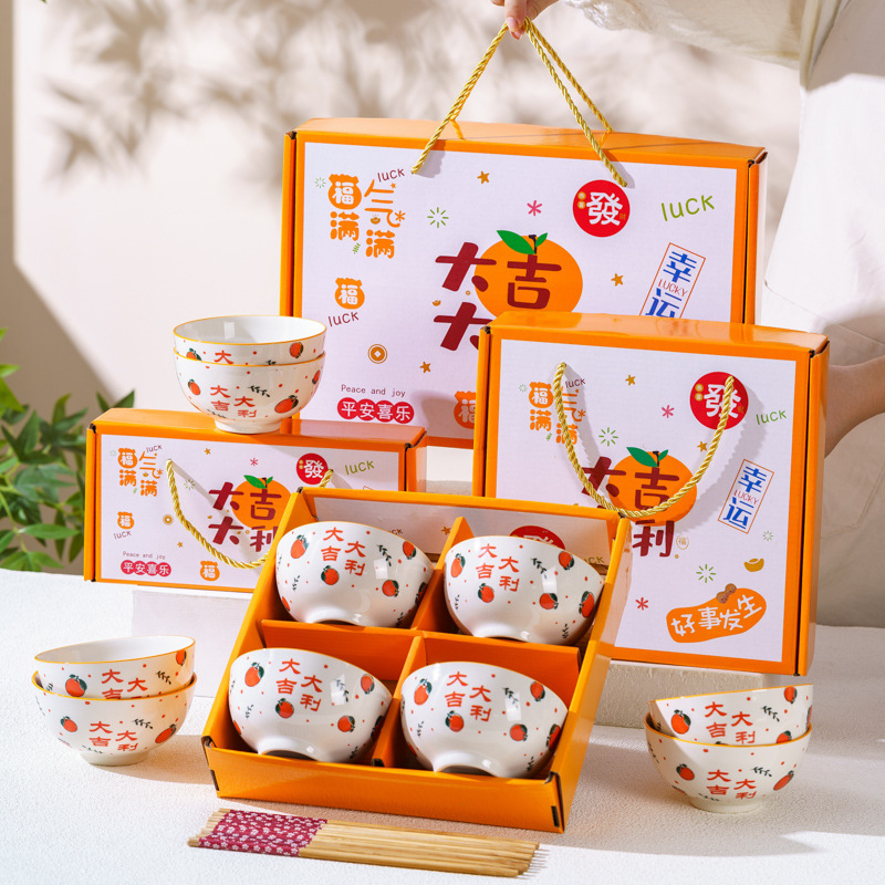 セラミック食器ボウルギフトボックスセットクリエイティブ小さなギフトオープニングイベントギフトボウルと箸セラミックボウルセットボウル