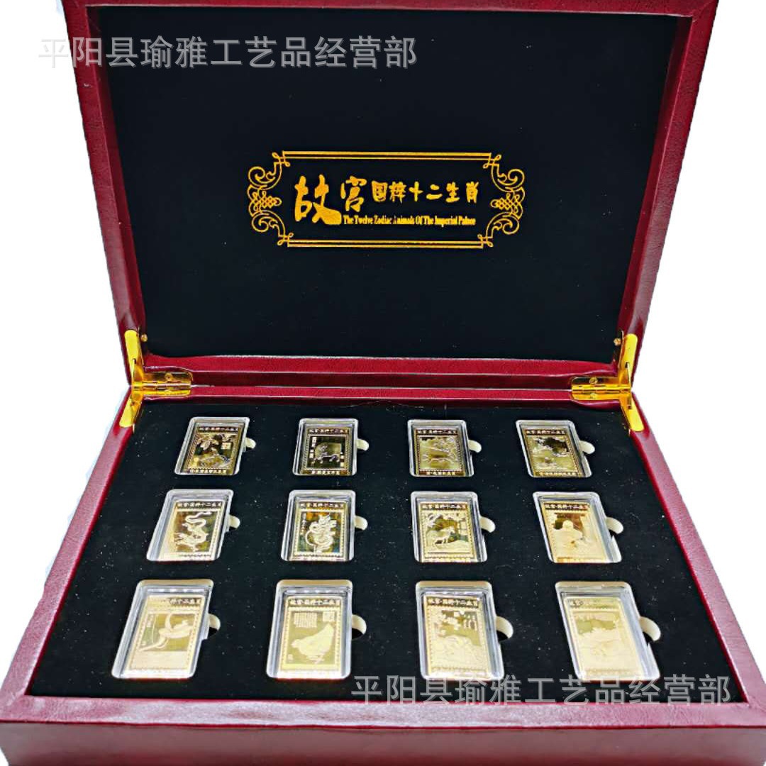故宮国粋十二生肖金メッキ条記念バッジ12個記念貨幣銀行保険会販売贈答品
