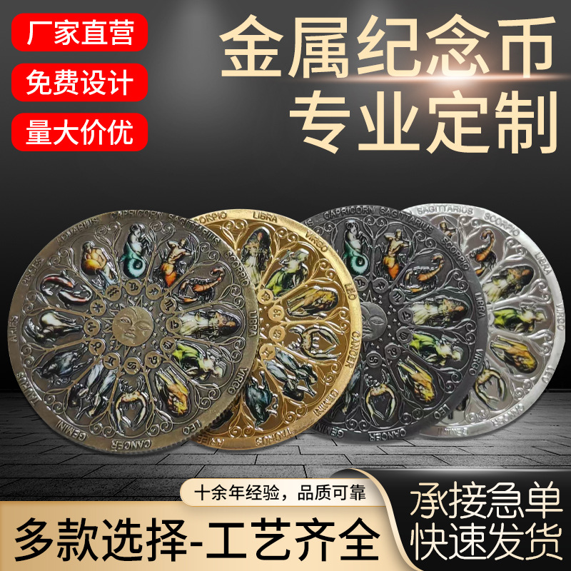 新しい国境を越えた12星座記念メダル、カラー記念コイン、幸運の女神守護コイン、メーカー在庫卸売