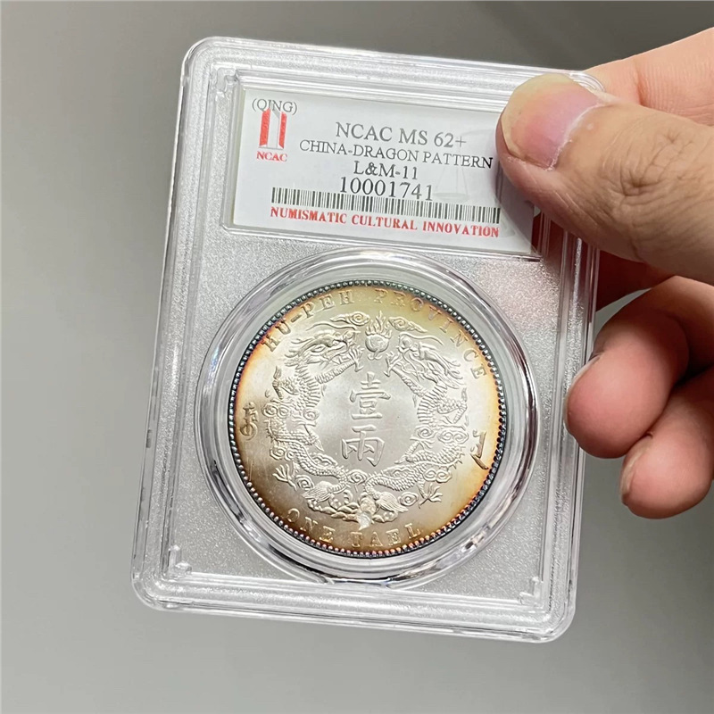 湖北省製清朝銀貨双龍古平 0.05kg 銀貨箱入りコインコレクション、カラフルなグレーディングコイン、QR コードをスキャンして確認できます