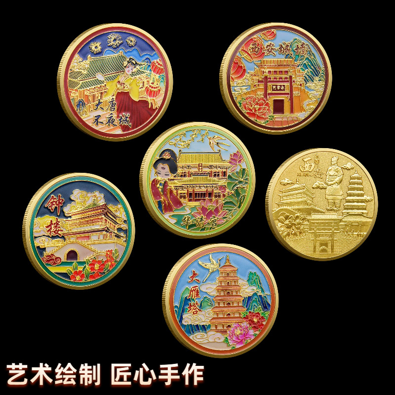 西安の観光名所記念コイン 華清宮鐘楼 大雁塔 金属カラー印刷記念コイン 観光名所のお土産