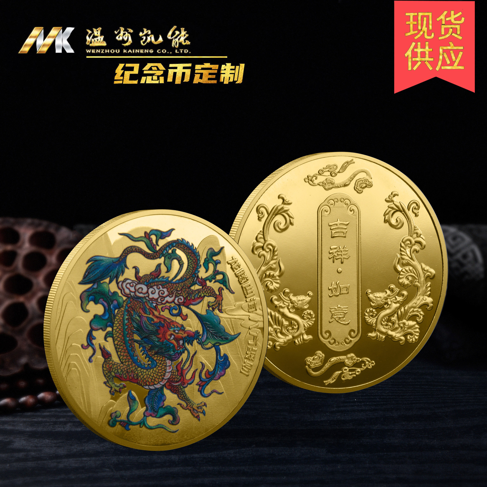 メーカー卸売uvカラー龍年記念貨幣記念章ニッケル古銀立体レリーフ中国風金属記念貨幣
