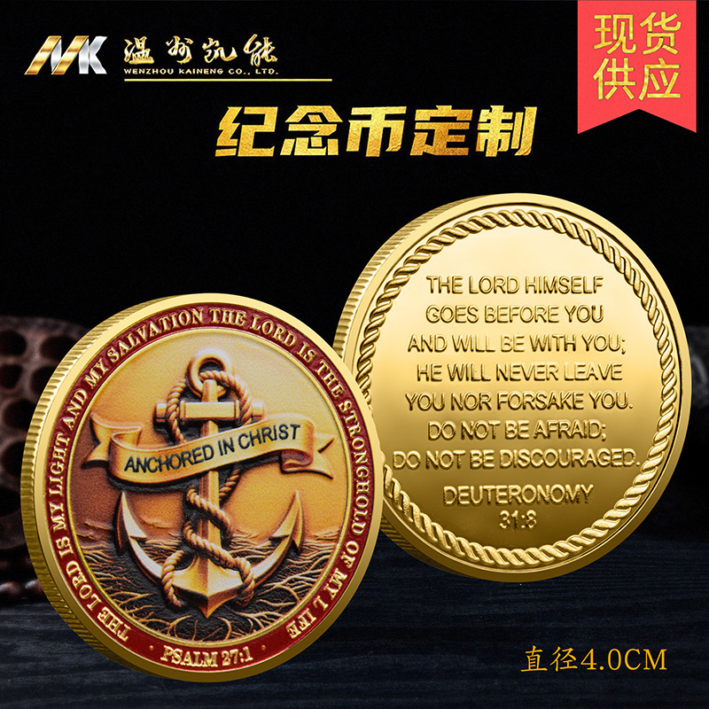 卸売ポイントペイントバッジアンカーと力信仰祈り銀貨金貨カラフルな記念コインコレクションコインギフト