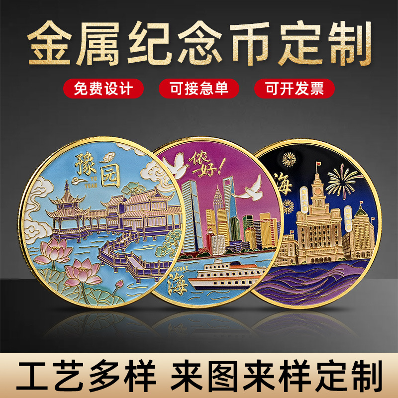 都市文化と創造的な観光名所記念メダル北京と上海のカラフルな記念コインコレクションチェックインギフトカスタマイズ