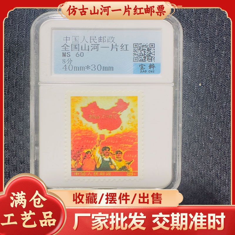 アンティーク山と川の赤いスタンプ、評価コイン、その他コレクション、記念スタンプ、評価鑑賞、卸売
