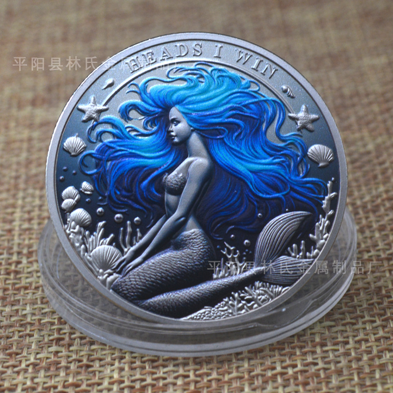 供应外国纪念币童话美人鱼金属收藏纪念品礼品定 做硬币