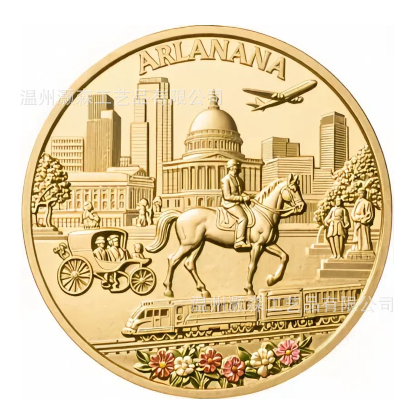 外国貿易金属記念コインカスタマイズされた観光名所レリーフ記念メダル金メッキコレクションコインの製造