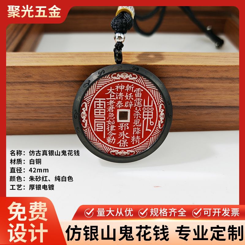 辰砂山鬼花ペンダントアンティークリアルシルバー銅貨ネックレス五帝マネーアンティーク八卦コインガウボックスペンダント