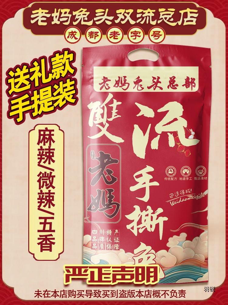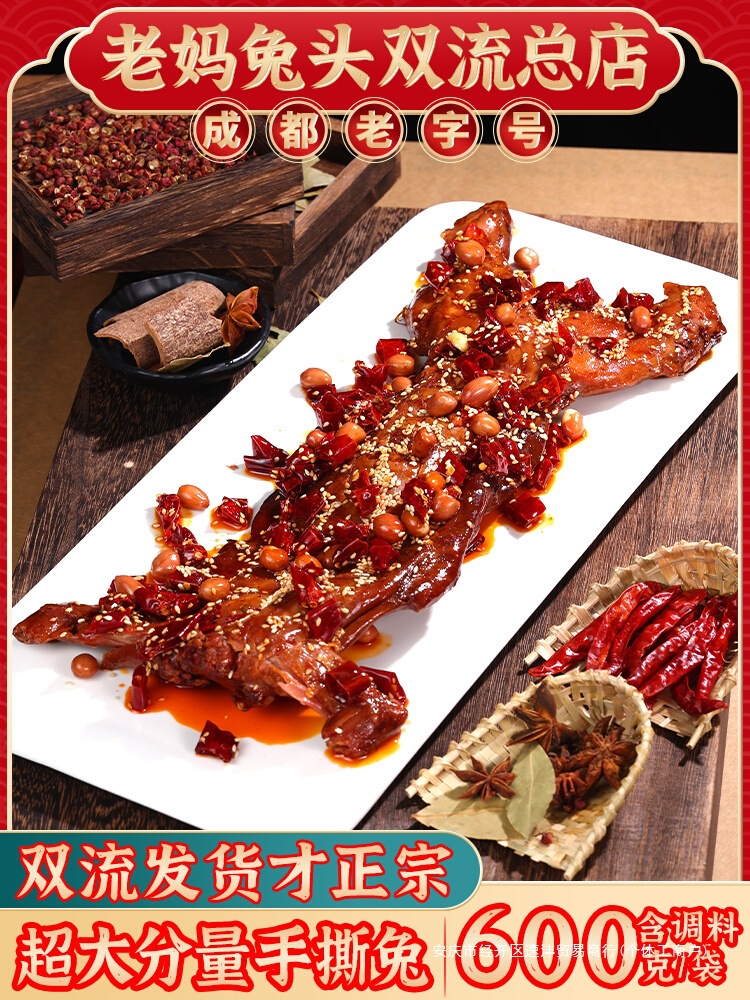 冷食兎麻辣兎脚四川特産成都双流母兎頭旗艦店麻辣手裂兎肉熟食