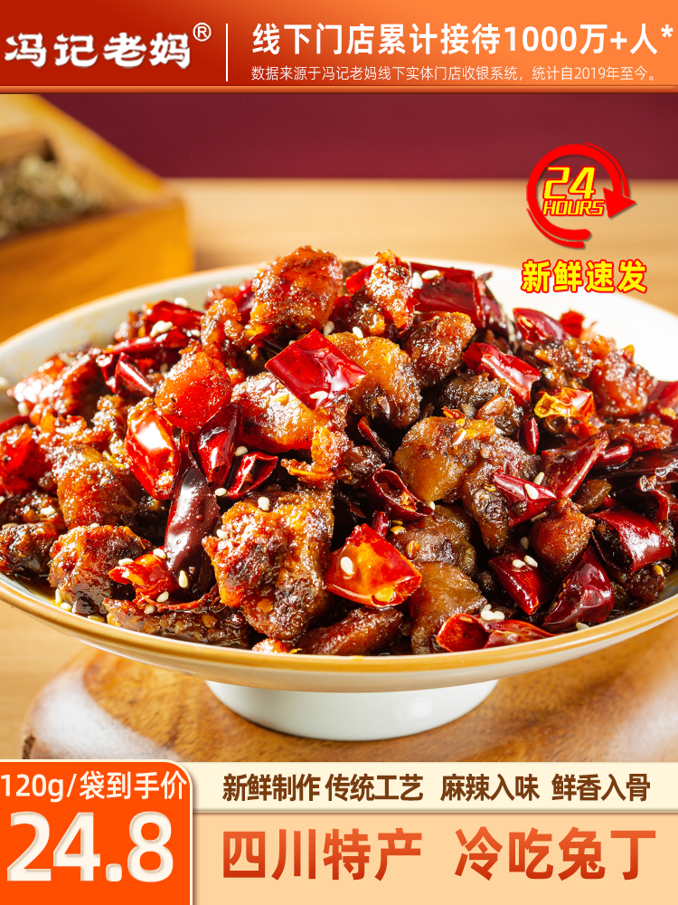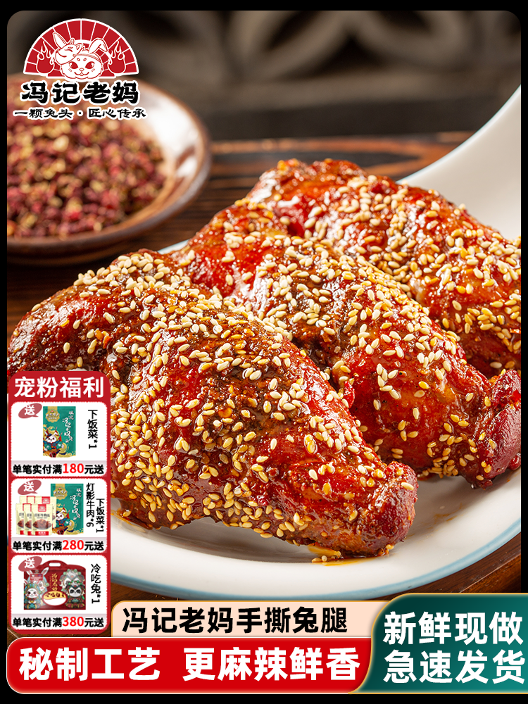 麻辣兎頭双流母兎頭馮記旗艦店本店四川成都産冷食兎丁手裂兎