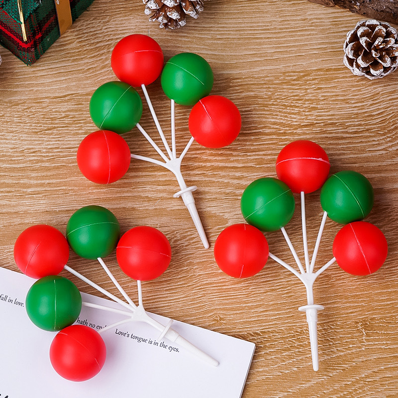 2024クリスマスケーキ装飾装飾品赤緑色プラスチック風船串復古大球スイーツ誕生日プラグイン