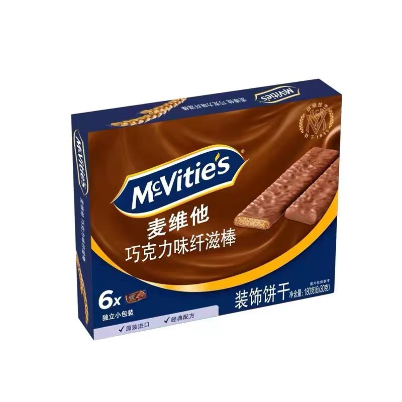 卸売英国輸入マクビティーズ全粒粉消化ビスケットチョコレート風味のファイバースティック 180 グラム