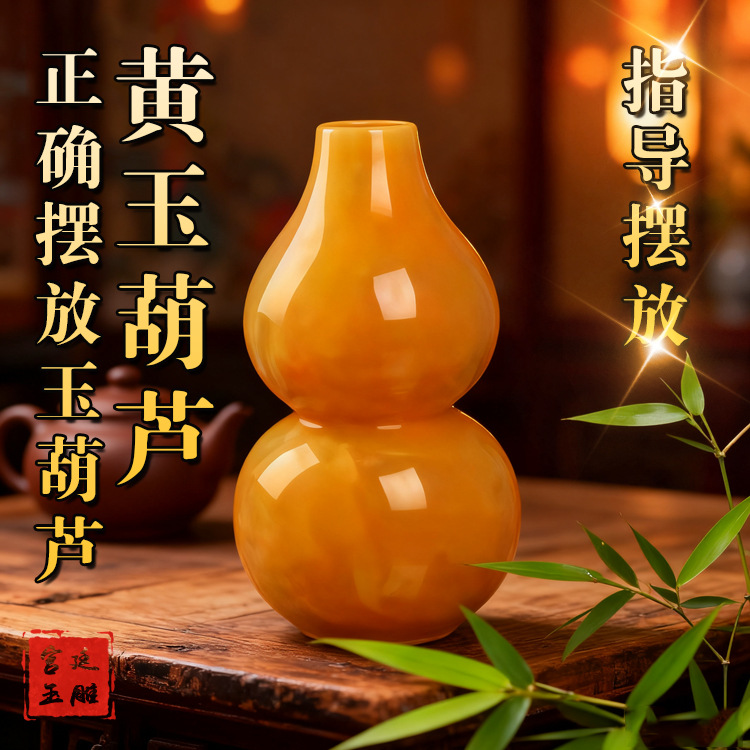 黄玉のヒョウタンの置物の中実のヒョウタンのペンダントの家庭の事務の客間は玉の贈り物の工芸品の卸売りを飾ります。