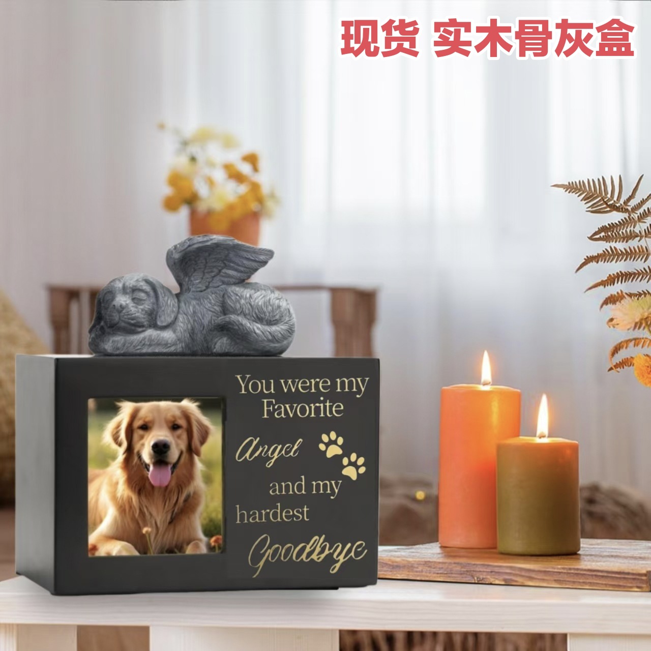 現物ペット骨灰箱木製黒色写真入りペット木製骨灰箱彫刻可能ネームプレート