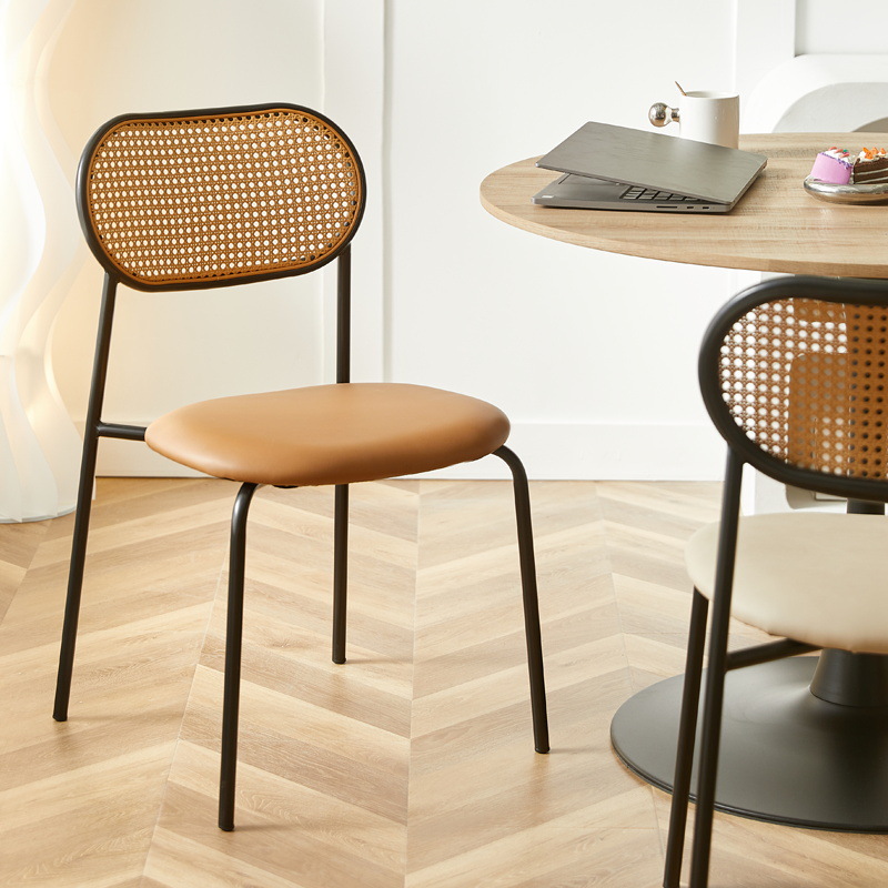 北欧レトロ籐ダイニングチェアデザイナー中世スタイルのダイニングテーブルと椅子ホームB&Bカフェアイアンバックチェア