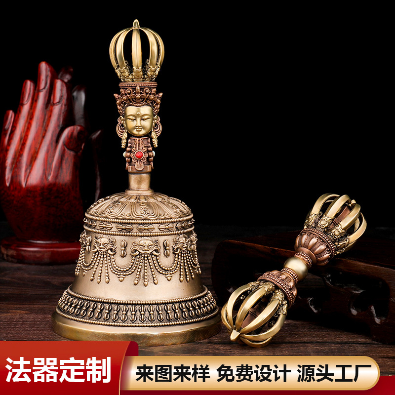 ネパール手作響銅金剛鈴金剛杵水陸法会用品蔵鈴五股金剛杵法器鈴