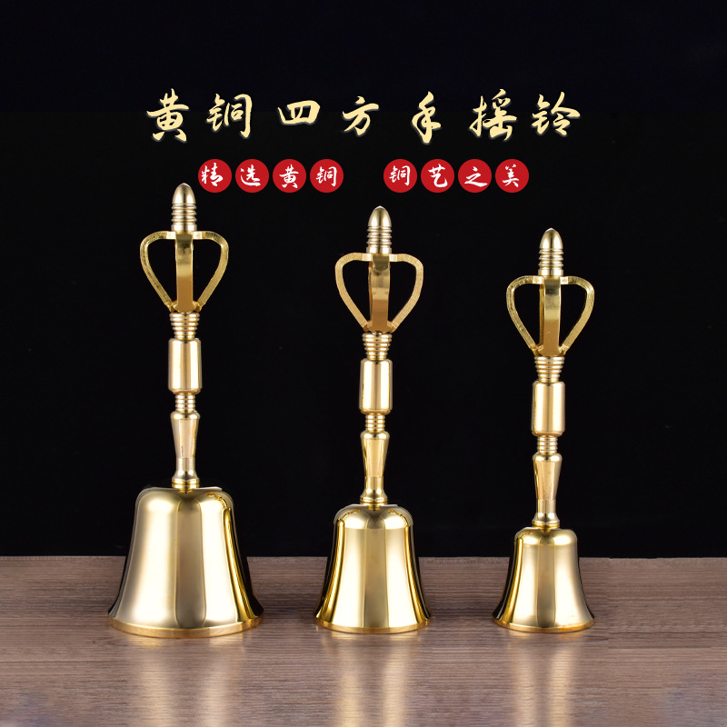 仏具用品の真鍮の四角い手は鈴の真鍮の鈴を振って授業を受けます。