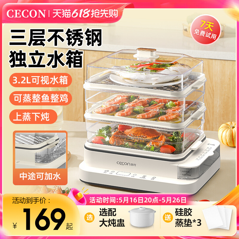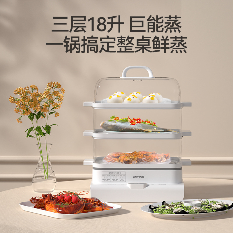 栄事達電気蒸し器28L家庭用可視分割式多機能電気蒸し器三層全自動蒸し器