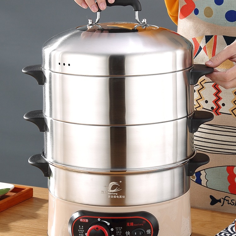 送料無料電気蒸し器多機能家庭用大容量電気蒸し器増粘ステンレス鋼三層時間制御断熱自動