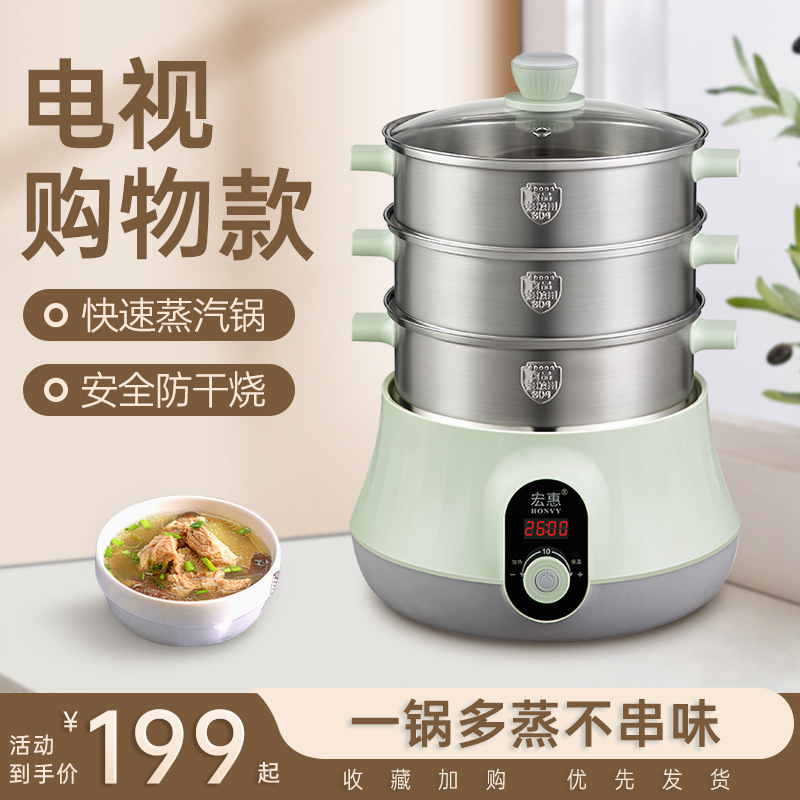 送料無料、高速省エネ蒸し器組み合わせ多層電気蒸し器多機能家庭用三層プラグイン蒸し器ビジネス