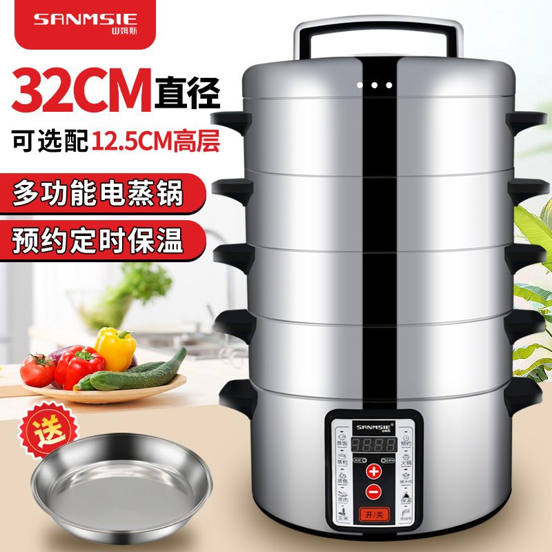 送料無料 Samss 32 大容量ステンレス鋼電気蒸し器家庭用多機能三層四層電気蒸し器自動