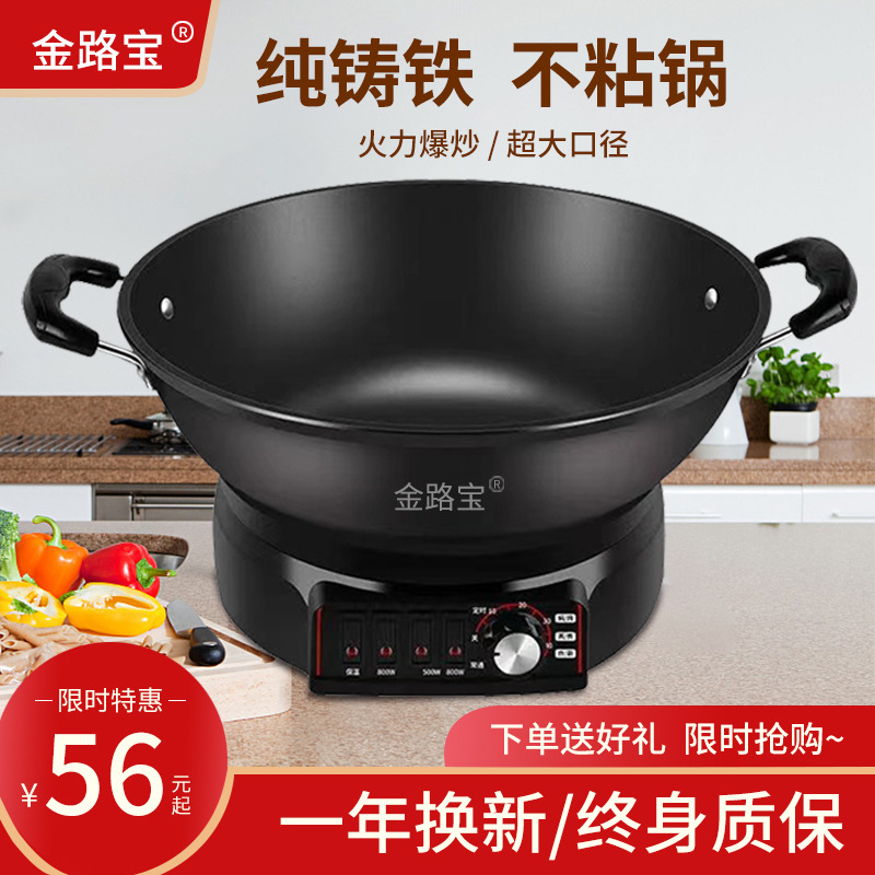 電気炒め鍋多機能家庭用電熱鍋鋳鉄電気鍋爆煎蒸煮連体一体式電気炒め鍋