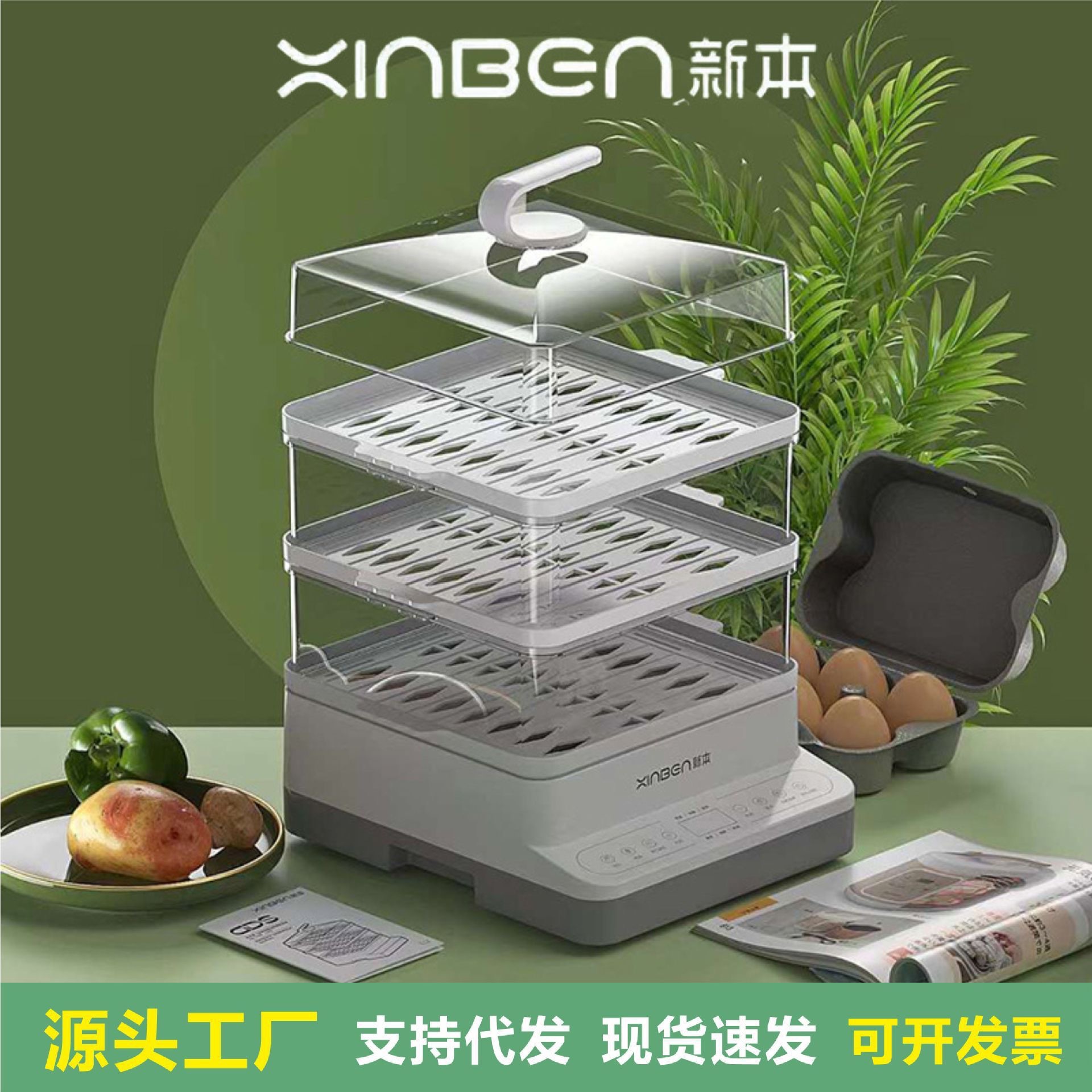 夏新電気蒸し鍋家庭用多機能電気蒸し器三層大容量蒸煮一体鍋多層蒸し器卸売り