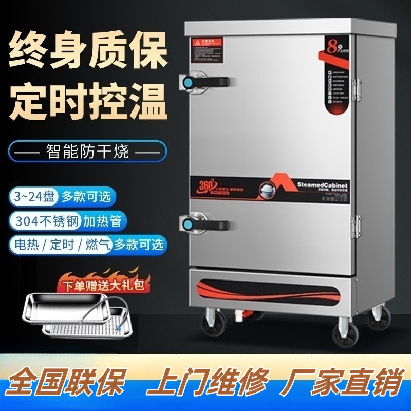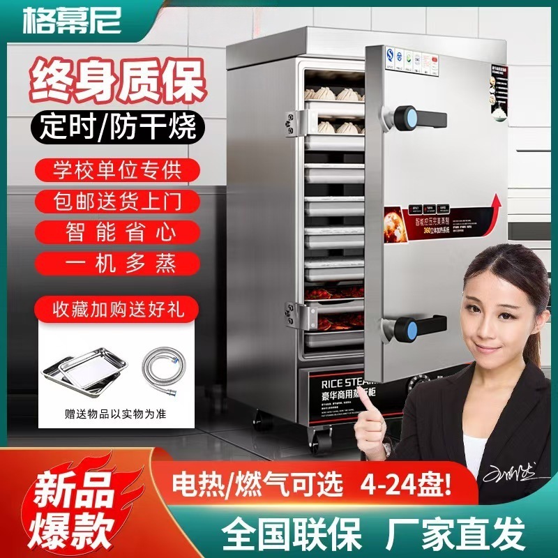 双門蒸飯箱電気蒸飯車24皿商用大型食堂海鮮蒸飯箱ご飯蒸飯箱ガス