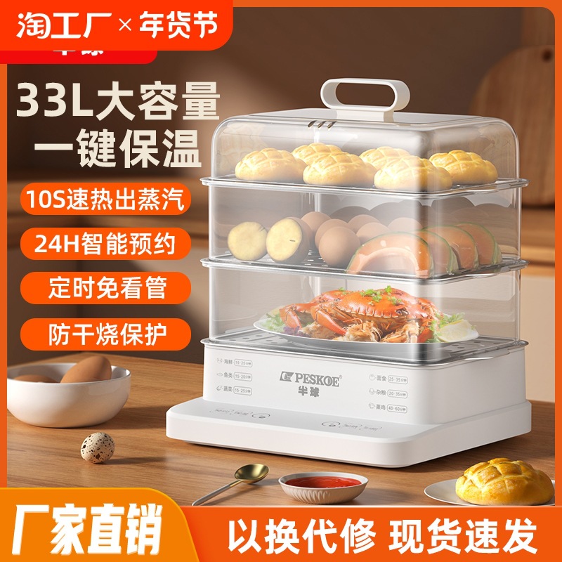 24L家庭用スマート多機能保温電気蒸し器大容量朝食機ギフトTriple Steamer