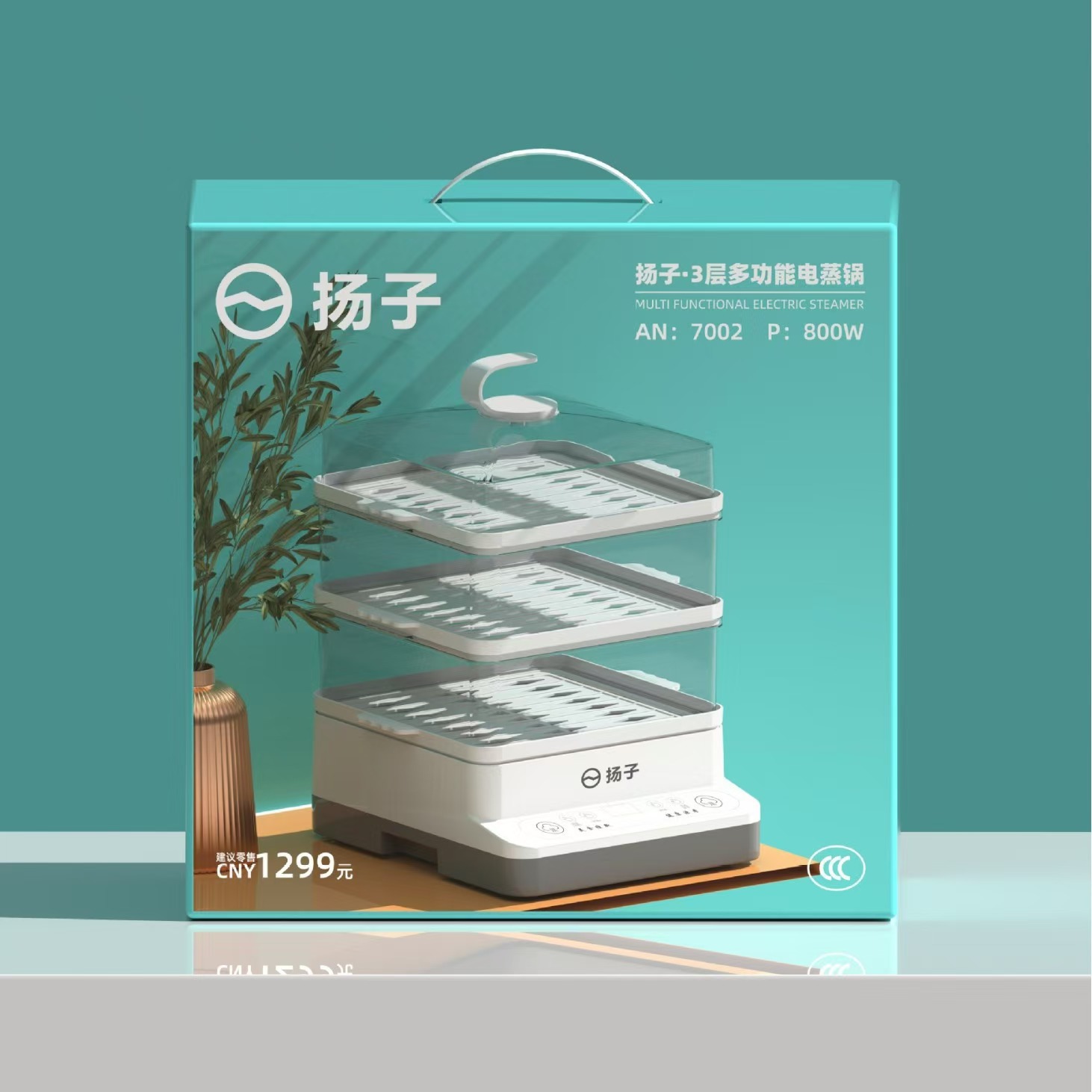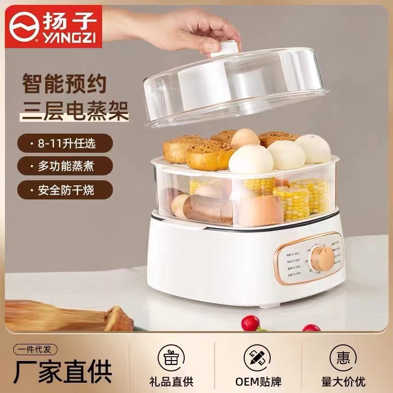 揚子三層電気蒸し鍋家庭用一体多機能大容量知能予約蒸気電気蒸し器ギフト卸売り