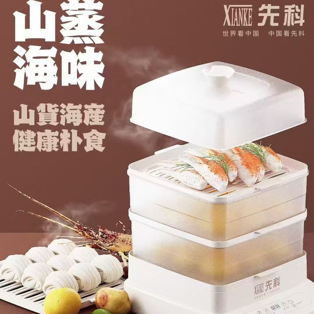 新型先科電気蒸し器家庭用三層多機能10リットル大容量プレゼント蒸し器予約保温蒸し器