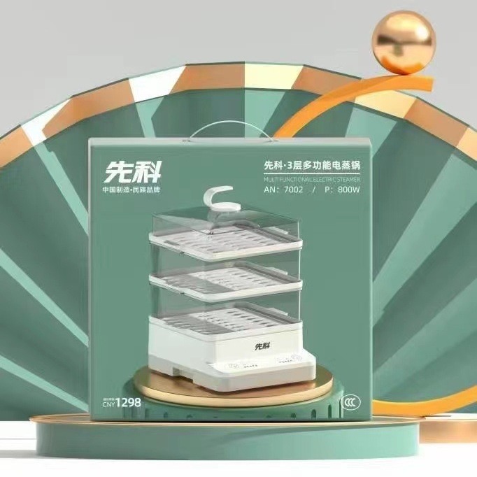 先科電気蒸し器家庭用多機能電気蒸し器三層大容量可視透明一体蒸し器プレゼント卸売り