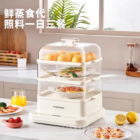 Steamerクロスボーダー電気蒸し器家庭用多機能三層蒸気鍋大容量煮込み一体型朝食機