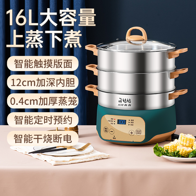 クロスボーダー専用電気蒸し器大容量家庭用蒸煮一体三層多機能自動蒸し器プレゼントアマゾン