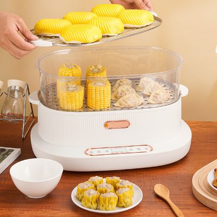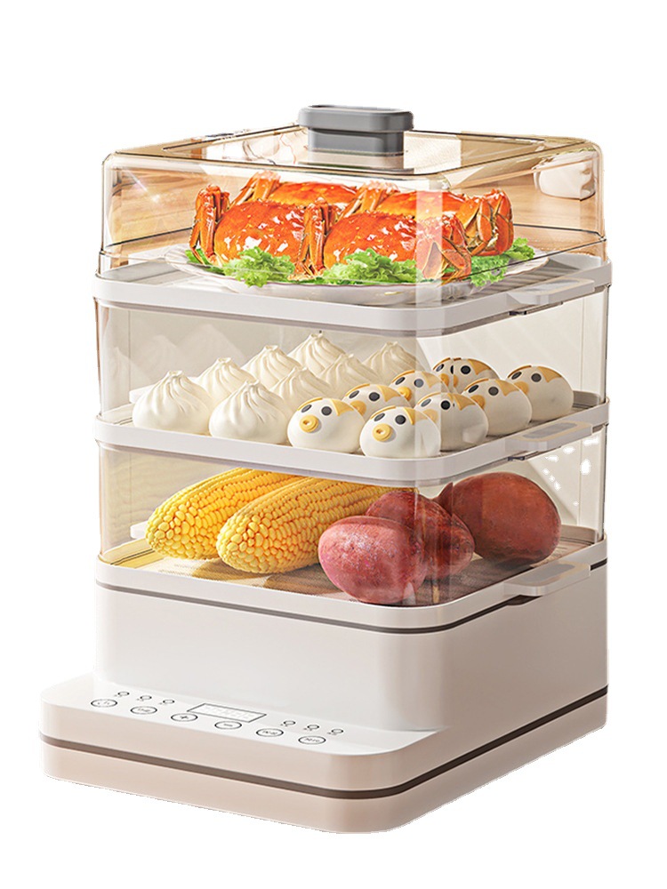 新型家庭用三層蒸気鍋透明多機能小型電気蒸し器知能予約電気蒸し器折り畳み蒸し器
