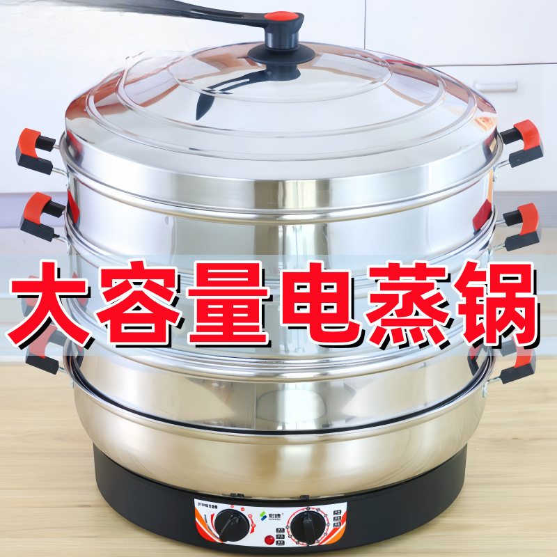 超大号不锈钢电蒸锅插电蒸笼家用商用保温自动断电52cm三层蒸菜包