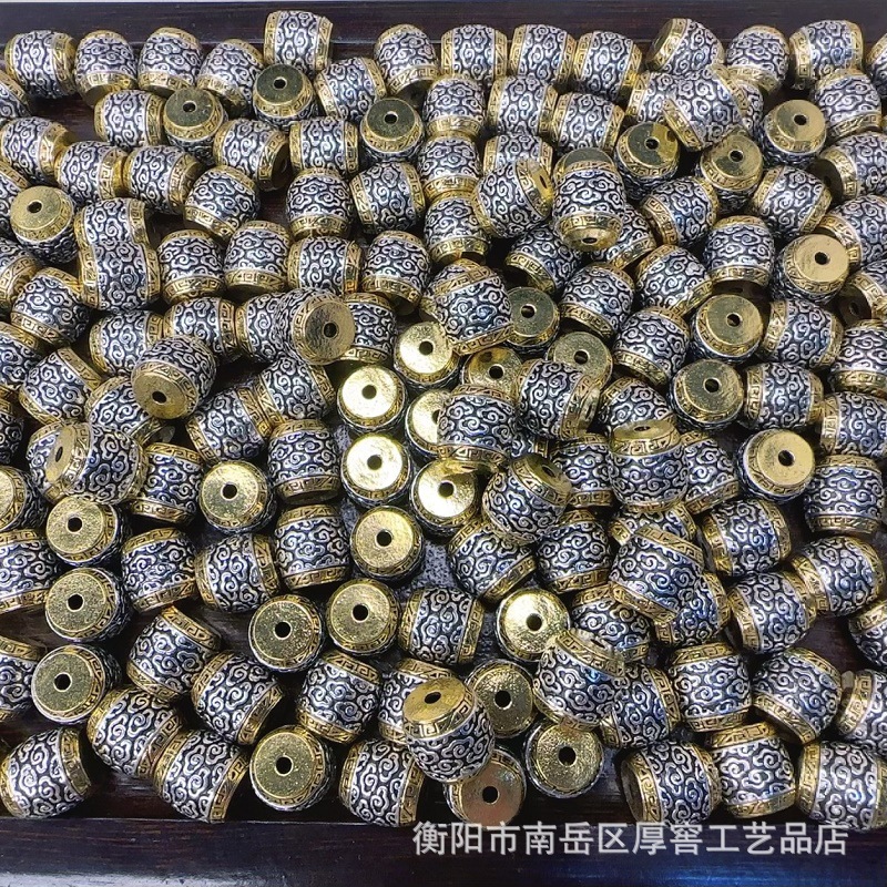 天然チベット銀合金2色万字祥雲桶珠DIY文は仏珠アクセサリーを飾っています。