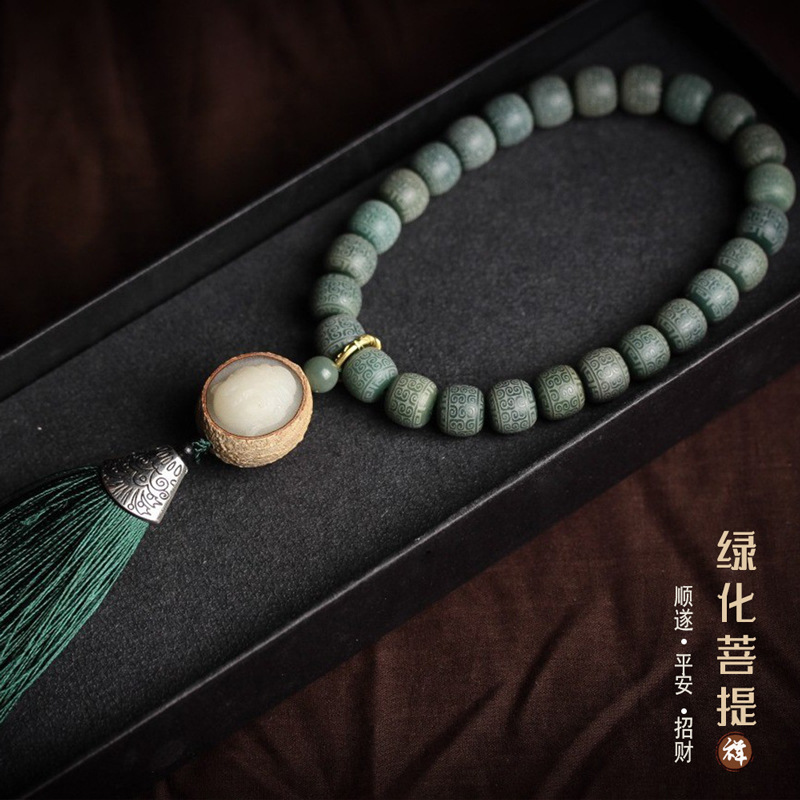 天然緑化菩提根仏珠ブレスレット手串持数珠車掛復古風男女金流蘇文玩具アクセサリー
