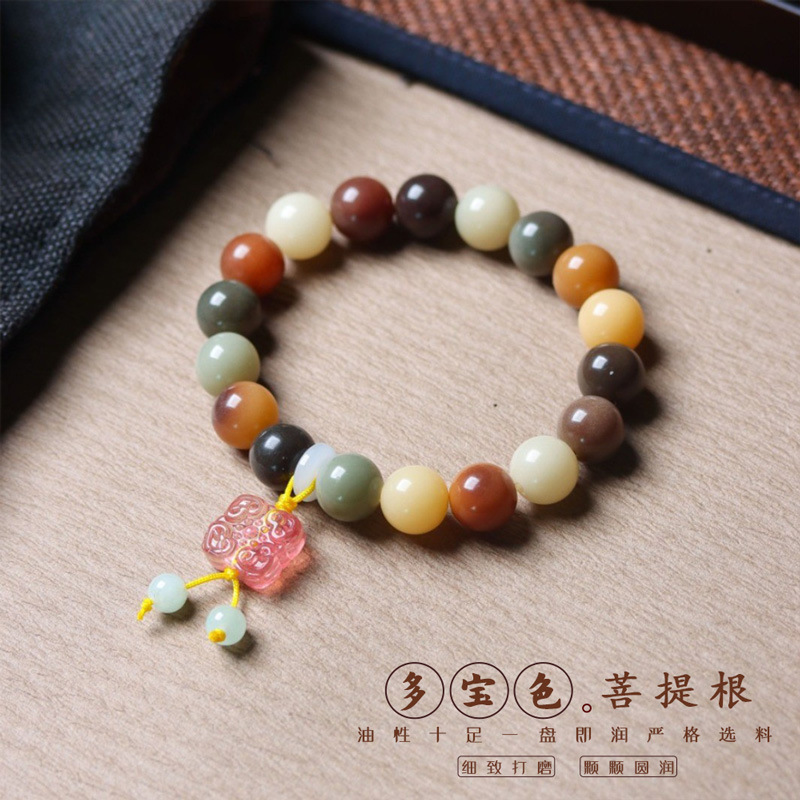 海南白玉菩提天然風化盤文游DIY手持ちチェーン念仏珠串漂花多宝多色グラデーション